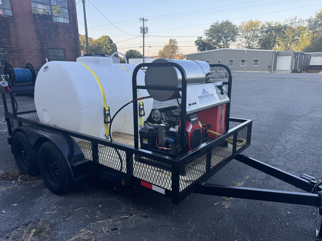 Pictures are stock photos that represent the trailer package. Trailer package is as described above. Picture may show a different unit on the trailer(engine size/model). The pressure washer on the trailer package is as listed above.