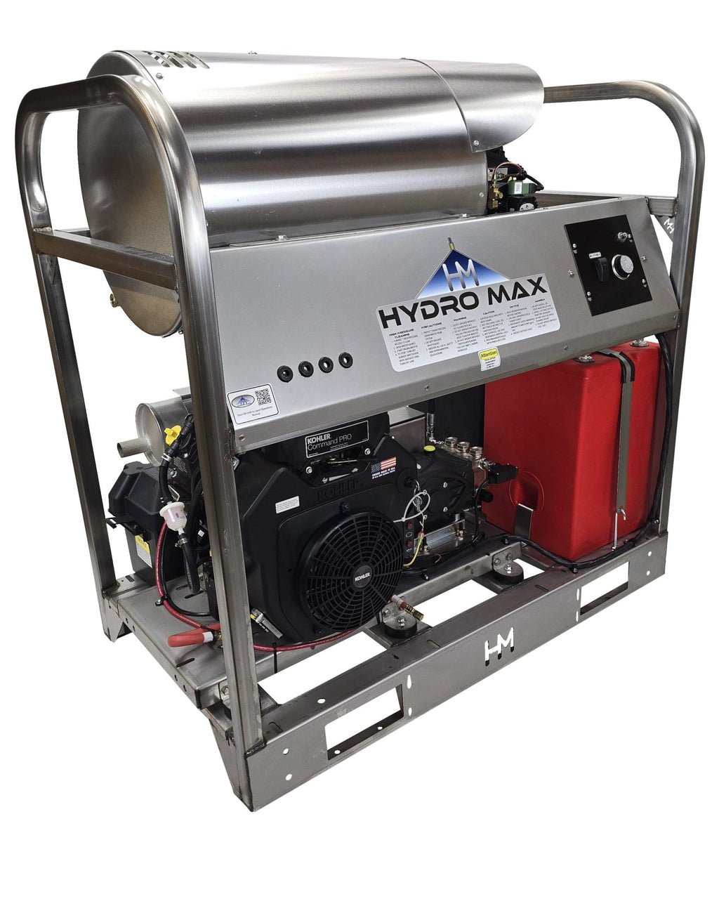 8gpm, Kohler 26.5HP-EFI Engine ( Fuel Injected), Extreme Duty SS Frame, Weather tight electrical box, Belt drive Pump, Stainless Steel Panels/Coil Wrap, Adjustable Thermostat,12V Burner, 12gal Fuel Tanks, Easy Oil Drain, 50' 4000psi rated Non-Marking Hose, Chemical Injector, 48" Lance w/ GP Trigger Gun, QC Nozzle Set, High HP BX Belts. The DC Series also features large heater coils for excellent heat rise while still maintaining fuel efficiency. Unit dimensions Approx. 46" L x 48" H x 28" D